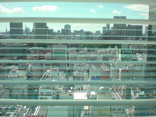 昨日は,そこで話をしてくれということで,初めて行きました(14Fの廊下に端の窓から西の方を撮った写真↓(ブラインド越し(^^;).ちょっとわかりにくいが,御茶ノ水方面のセンチュリータワーや医科歯科や日立が見える).