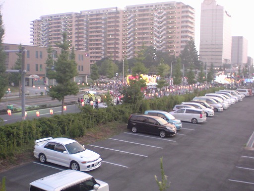 お祭りの様子です.センターの上のペデに出店がぶわーっと出てるんですが,いったいどこから集まって来たんだ?というくらいものすごい人です(もろ,通勤経路とかぶる).