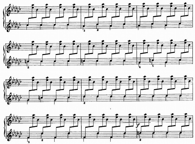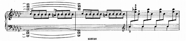 指を速く動かす感覚をキープするという意味では,レパートリー?の中に「もう1つの超高速曲」というか,更に高速のものがあります.ラウタヴァーラのOp.42のエチュードの第1曲です.