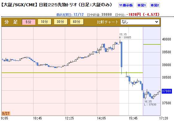 でも,結果は,T市ではなく,I破になったということで,株式市場は,15時に市場は閉まってしまったのですが,日経225先物の取引は続いていて,総裁選の結果が出た瞬間,大暴落です.I破は,Aベノミクスの金融緩和に批判的というはまあいいんですが,金融所得課税の強化と言ったこともあって,それは,これは明らかに株式市場にはマイナスで,しかもこのタイミングで,これでは経済オンチと言われても仕方ないですからね(こういうエキセントリックなところがやっぱり怖い).