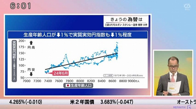 結論から言うと,少子高齢化に伴う人口減少ということで,このサイトで,基本的に人口が増えなければ,経済成長しないと再三書いてきましたが,まさにそういうことなわけで,しかも,賢い人は,それを見越して,どんどん外貨や商品などに資産を移して,益々,円安になる,何もしない人は,どんどんじり貧になるということです.どうしますか?