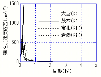 東沖の地震と同様に0.5秒以下が卓越した短周期地震動であることがわかる.