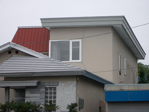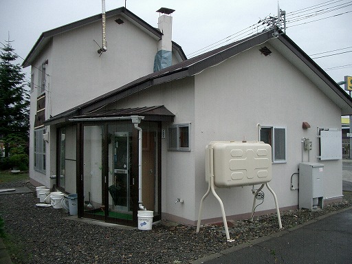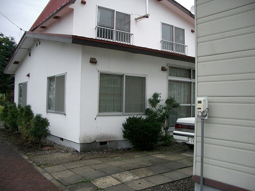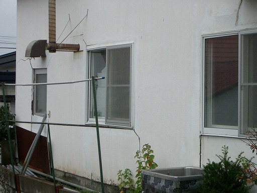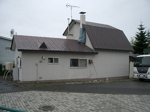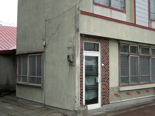 ・池田町役場庁舎の裏手にある建物の外壁の剥落↓
