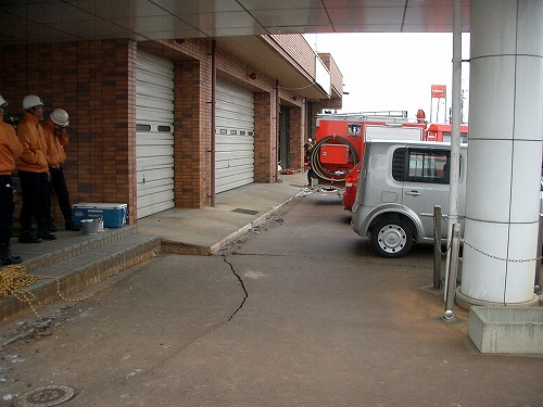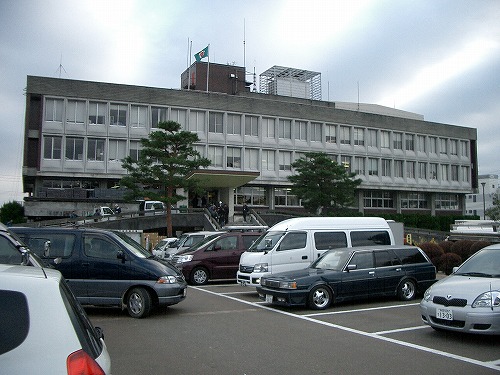 6時過ぎに小千谷市役所に到着.小千谷市役所全景↓役所建物自体の被害はガ