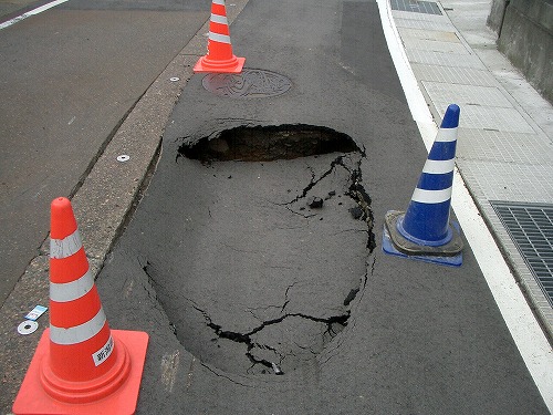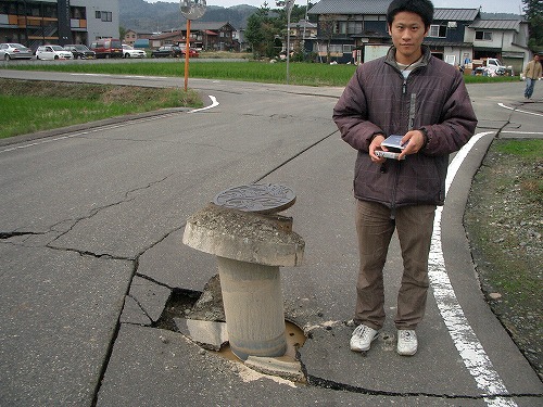 マンホールの浮き上がり↓(右に立つ大月君の身長は173cm)