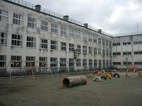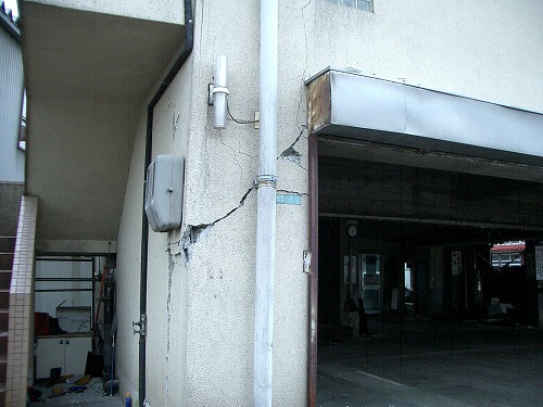 小千谷小学校建物は,非構造壁に被害が見られるが↓