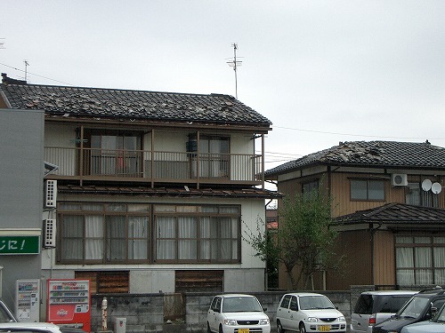 屋根瓦の家屋は少ないが,屋根瓦の家屋の屋根瓦の被害多数.