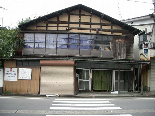 範囲(半径200m)からややはずれるが,1階の駐車スペースが潰れた木造建物