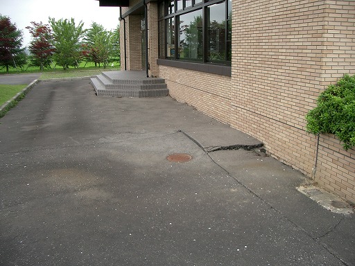 南郷町役場建物の西側端部の地盤にやや被害