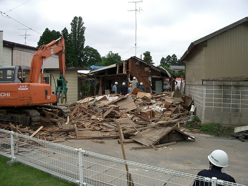 大きな被害を受けた家屋.取り壊し中