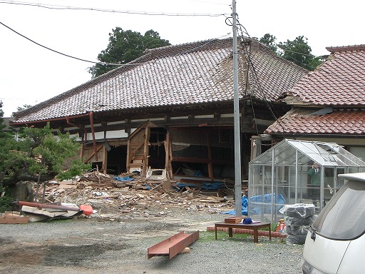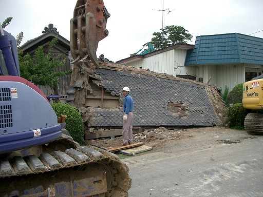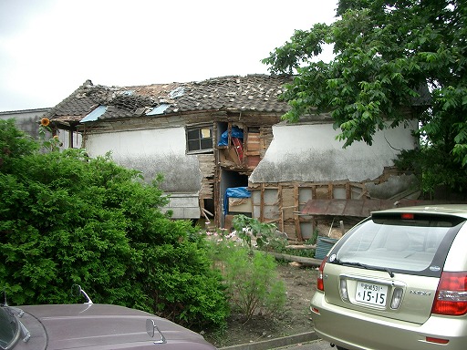 震度計から300mほど南西にある,大きな被害を受け,取り壊し中の家屋.住人