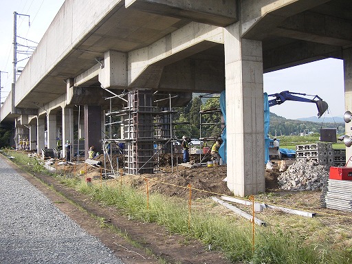 せん断破壊した新幹線高架橋