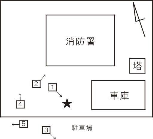 (□の番号と矢印はそれぞれ写真番号と写真撮影方向に対応)