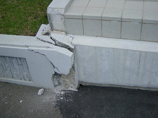 ・役場建物の入り口の基礎の部分が衝突によって損傷↓