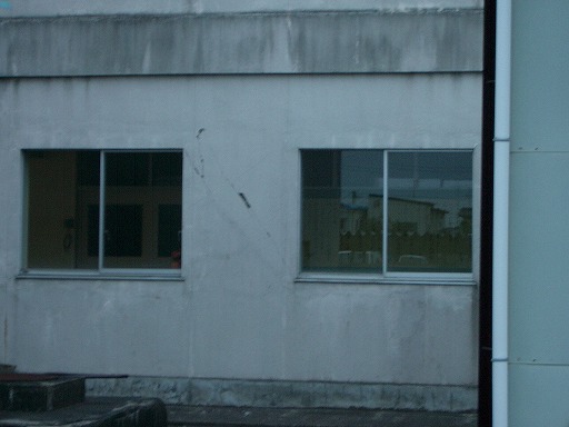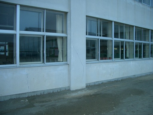 北側の東西に長い校舎の柱にせん断ひび割れが見られた反対側(北側)