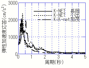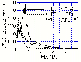 大きな値となっている.特に,K-NET小千谷は0.5-1秒とやや長い周期が卓越し