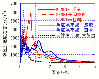 響を与える1-2秒を見ると,甚大な被害を引き起こした1995年兵庫県南部地震