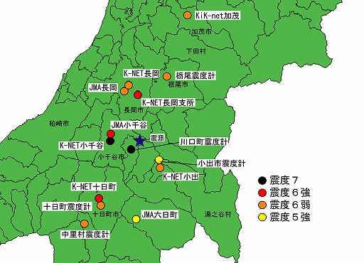 あることがわかる.計測震度も震度7相当となっている.K-NET小千谷,K-NET